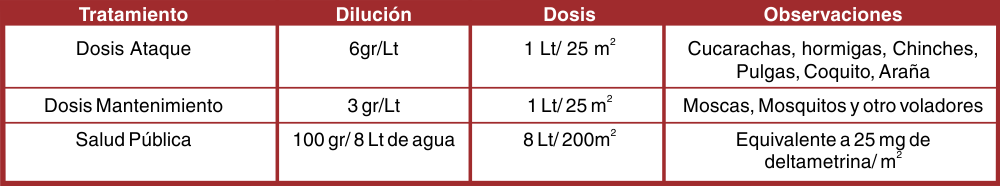 Usos: Deltaforce® VPM WP 5% es un insecticida profesional que controla con eficacia y acción prolongada las siguientes plagas: Mosquitos, Moscas, Cucarachas, Hormigas, Pulgas, Pitos, Coquitos, Gorgojos, Chinches, Escarabajos, Escorpiones, Arañas, Piojos y Pescaditos de Plata. El producto puede ser utilizado en todo tipo de establecimiento, incluyendo las industrias, los establecimientos pecuarios y el hogar.
